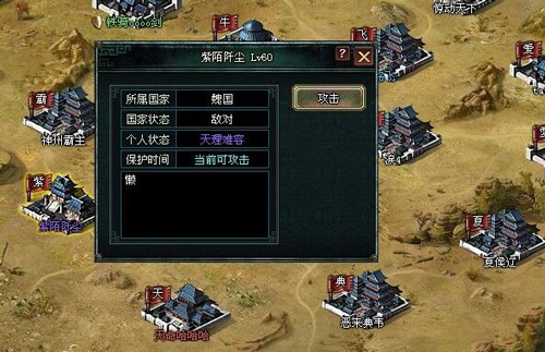 攻击敌国玩家特别说明:1.防守方兵力损失在原基础上减少50%;2.被敌人攻击时有一定概率被爆掉建筑,不包括主城和影响等级上限的建筑。3.兵力越少,被爆建筑概率越大。(转生时兵力薄弱,慎重。)4.攻击时爆掉敌人建筑可获得大量威望。5.当天每被攻打1次,保护CD累加10分钟,隔日4点累加清空。