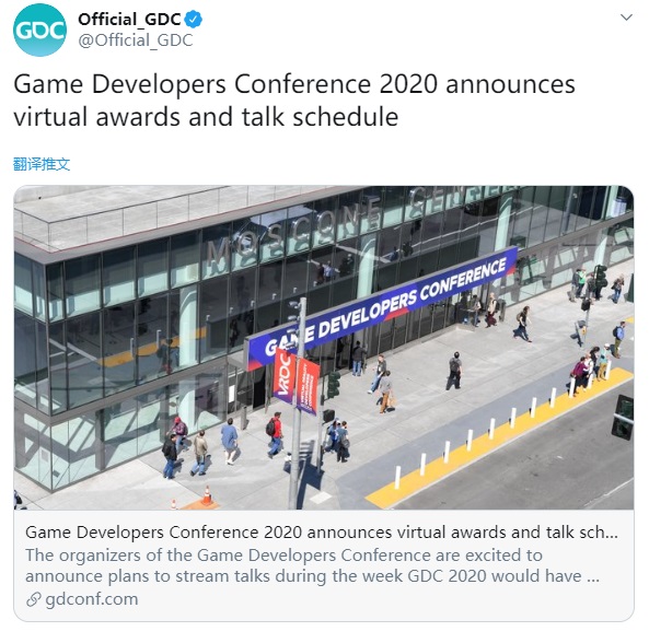 游戏开发者大会(GDC)主办方宣布,GDC2020将改为以线上直播的形式在3月17日至3月21日举办。