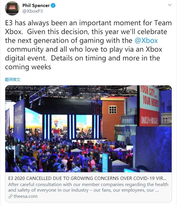 微软XBOX部分负责人菲尔·斯宾塞表示,E3对于Xbox团队来说一直都非常重要,今年X他们将采用“Xbox数字活动”的形式和社区的玩家以及所有热爱游戏的人们共庆游戏的新世代。具体细节将在接下来的几个星期内公开。