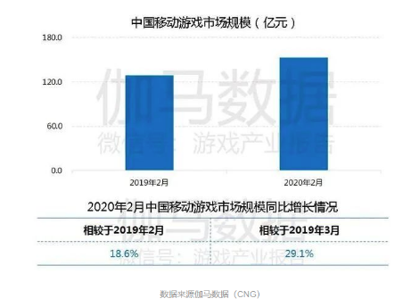 伽马数据发布的《2020年2月移动游戏报告》显示,2020年2月中国移动游戏市场规模超过150亿元,同比增长18.6%,较2019年春节后同期增长29.1%,日均流水情况也优于2019年同期。