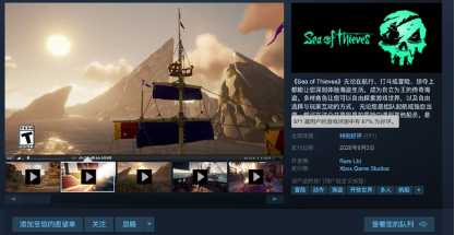 由Rare和微软联手打造的冒险类游戏《盗贼之海》已经在Steam平台发售,价格为116元,支持简体中文。