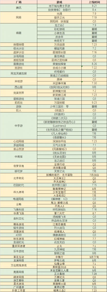 由于本文正式的发布时间为22日,7月份前半段上线的游戏也统计在内,盛趣的《龙之谷2》、完美世界的《新神魔大陆》、巴别时代《放开那三国3》等市场关注较高的产品均已上线,为Q3的全面大战开了一个好头,而属于Q3的精彩也才刚刚开始。