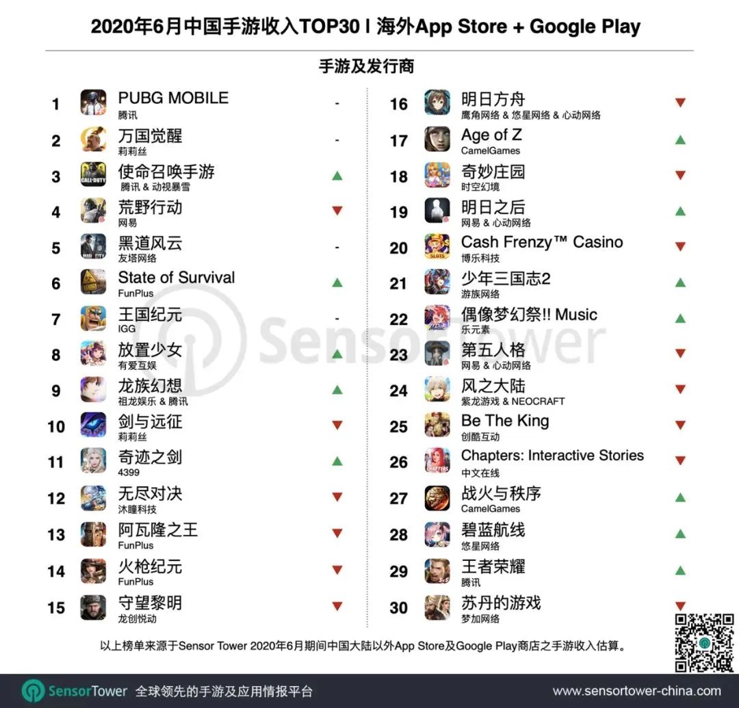 这样的收入成绩从去年一直保持到当下。上个月发布的中国手游收入Top 30中,《万国觉醒》依然排在第2,仅次于《PUBG MOBILE》。Sensor Tower称,一系列新活动的助力下,游戏收入达到7800万美元,至今海外总收入近10亿美元。