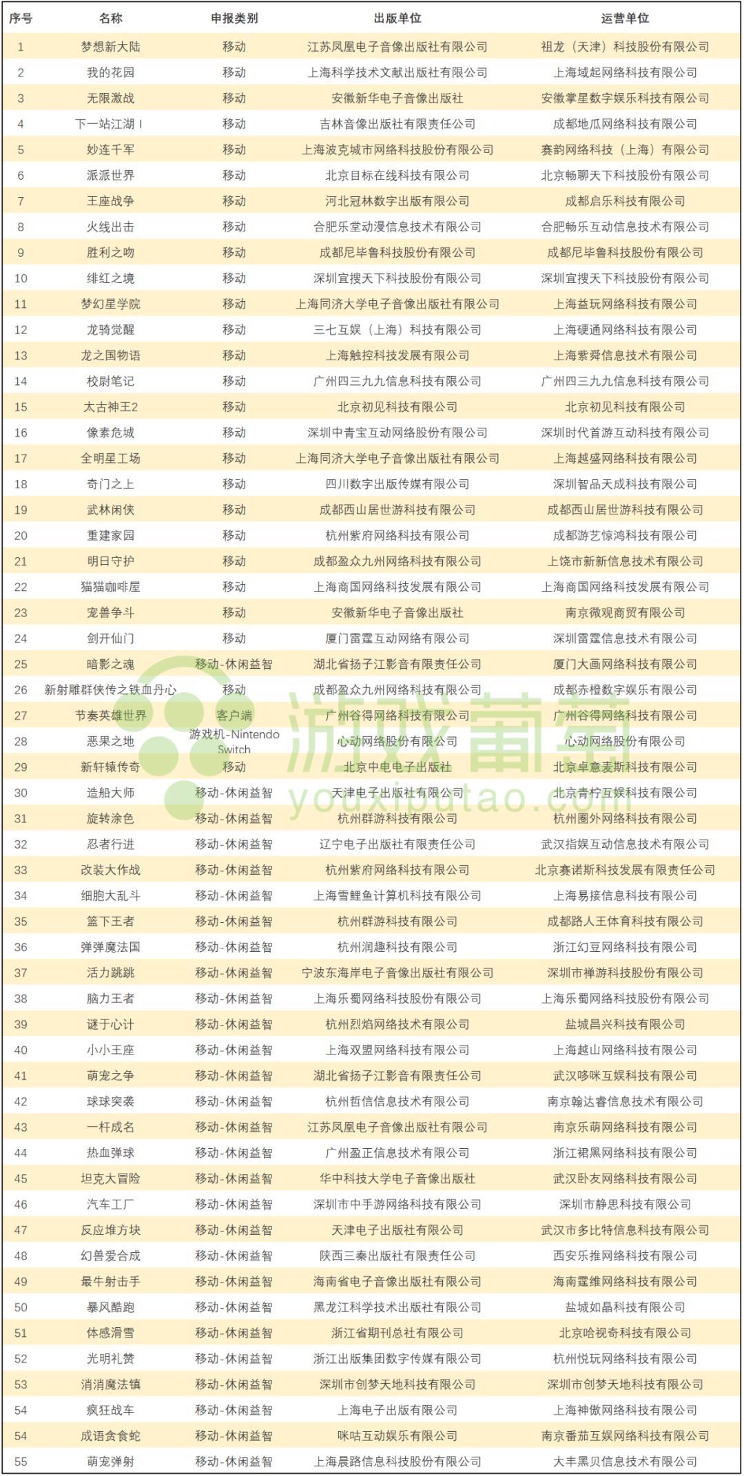以下为本批版号具体名单: