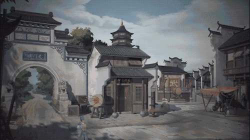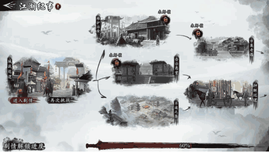 尽管《新射雕群侠传》注重对金庸“怀旧”元素的重现,但仍在美术、世界观、玩法等方面有着自己的全新见解。依托潇洒写意的水墨画风,游戏呈现出了独具特色的美术品质,并通过一幅幅粗犷而不失细节的画面重现各色经典桥段。不仅如此,游戏的整个主页面也是一派古色古香的江湖街景,古朴写实的徽式建筑风格、往来的贩夫走卒、随时间动态变化的天气系统等等,《新射雕群侠传》试图从视觉层面还原玩家眼中的江湖世界。