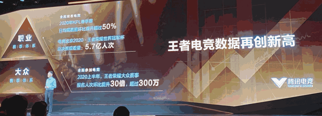 但就在昨天,在腾讯电竞发布会兼全球电竞运动领袖峰会上面,我第一次意识到在疫情的影响下,电竞已经取得了什么样的增长:举一个最简单的数据,2020年KPL春季赛的日均观赛量环比提升超过50%。