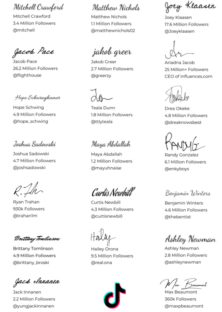 参与联名公开信的TikTok红人及他们的粉丝量级