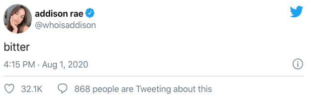 而粉丝数高达5750万的TikTok红人瑞伊,在新闻爆出后的几小时内,相继发布了“唉”、“允许你自己难过吧”、“苦涩”等多条推文。