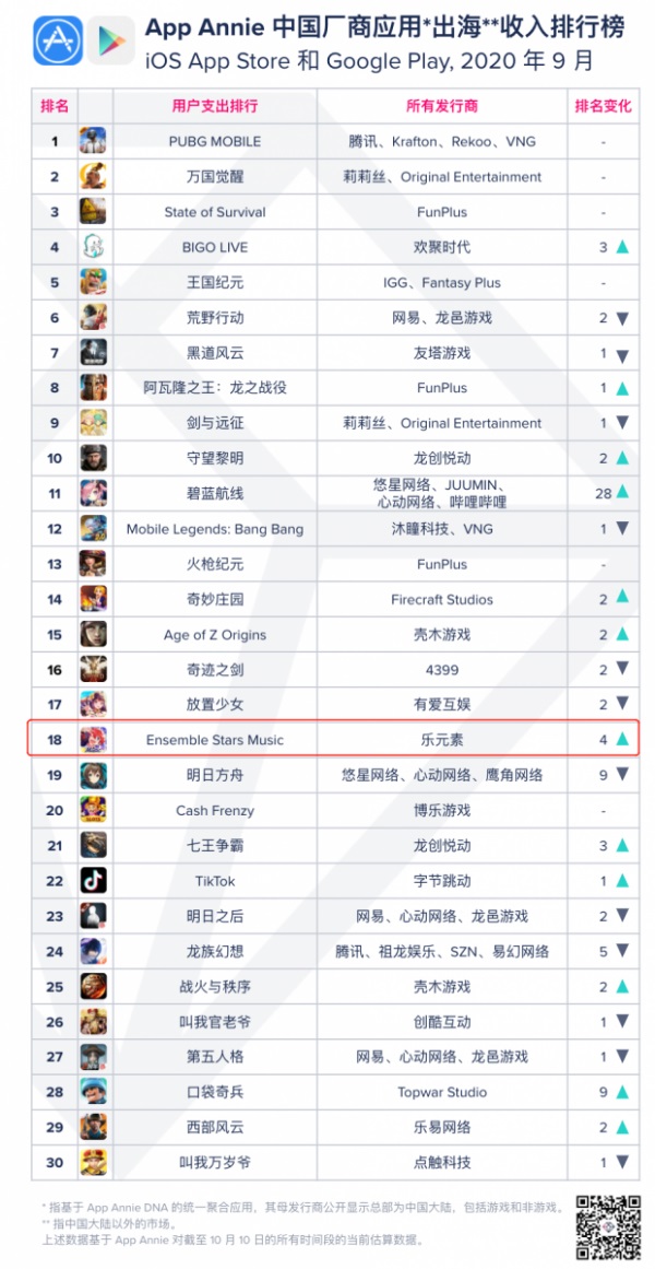 进入Q4,可以预见的是,国内手游市场还将会出现更多的“惊喜”。以大厂为例,目前腾讯储备有《天涯明月刀手游》《鸿图之下》以及《使命召唤手游》三款新品,网易更是储备有《天谕手游》《哈利波特与魔法觉醒》等八款新游,2020年游戏行业的“终局之战”拉开帷幕。