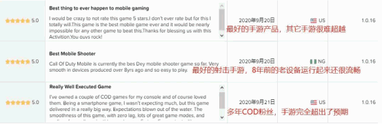 从海外玩家的反馈来看,不少人还是《使命召唤》主机系列的粉丝,比如一位玩家评论说,“我在主机上有多个COD游戏,对于一款智能机游戏,它完全超出了我的预期,游戏十分流畅、没有延迟,增加了很多伟大的游戏模式”。