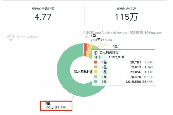 据App Annie的统计,《使命召唤手游》在App Store累计获得了超过115万评价,其中五星好评数量超过了102万,足以看出海外玩家对它的喜爱之情。
