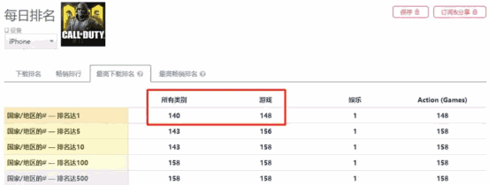 据业内数据公司Sensor Tower的报告显示,《使命召唤手游》发布首周就打破了手游行业的下载纪录,成为有史以来最快突破1亿次下载的手游产品,并且迅速登顶148国iPhone游戏免费榜。
